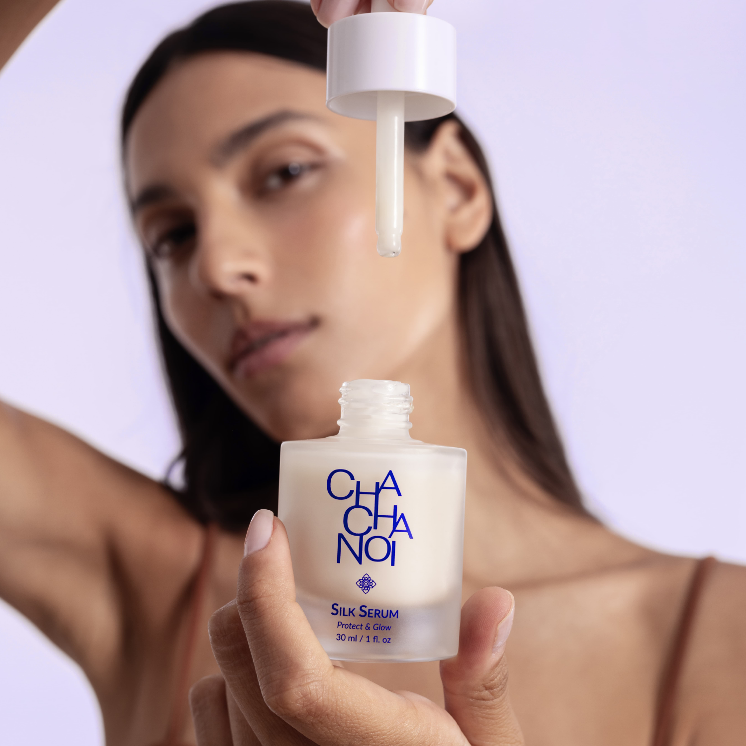 Indulge in a smooth-as-silk complexion with our luxurious Silk Serum. This versatile, daily serum invites you to slow down and immerse yourself in Thai-inspired beauty rituals, blending traditional ingredients with modern skincare innovation. Drawing upon silk’s natural abilities to safeguard the skin against environmental impurities, our Silk Serum can be layered with other moisturizers or worn as a primer under makeup.
